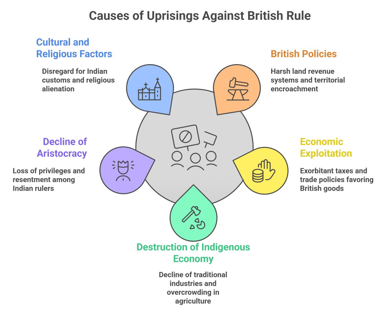 The multitude of popular uprisings against the British during the 18th and 19th centuries was driven by a variety of deep-rooted socio-economic and political factors: